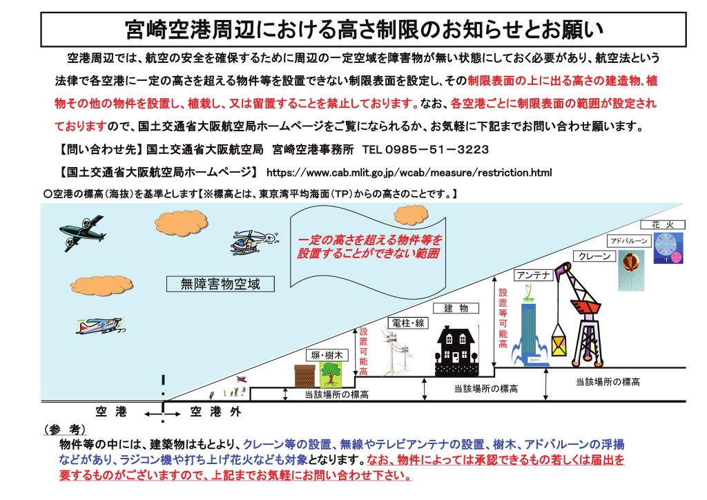 【宮崎空港事務所からの協力依頼】空港周辺における航空法等に定める建造物等設置の制限について