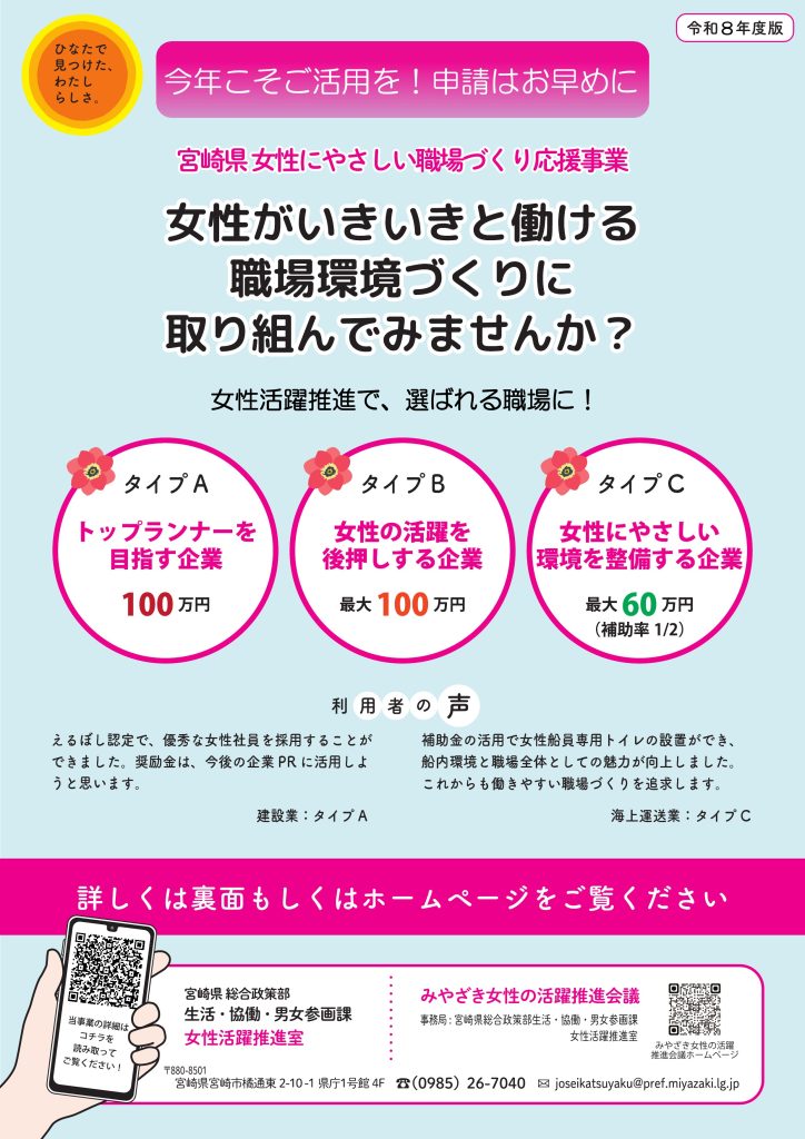 【県からのお知らせ】女性にやさしい職場づくり応援事業について