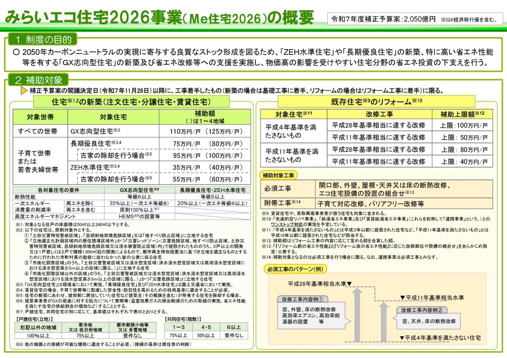 住宅:みらいエコ住宅2026事業について – 国土交通省